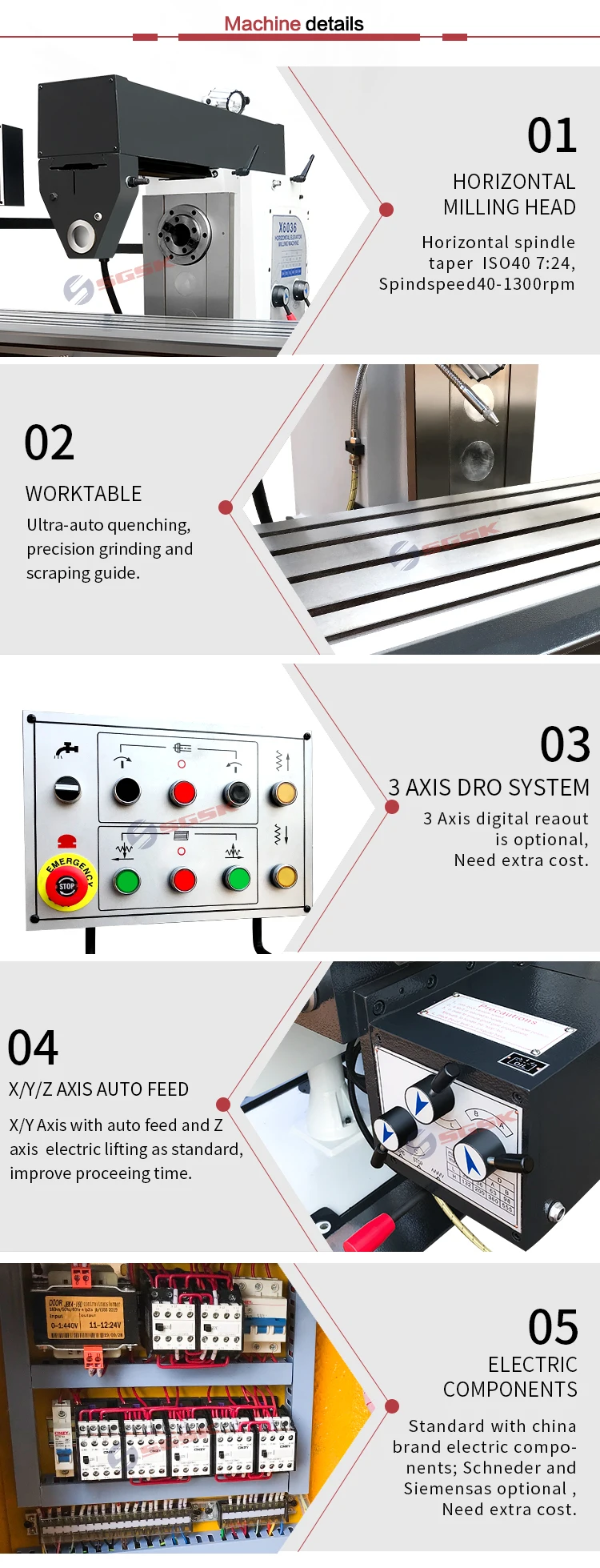 Vertical Milling head spindle taper | ISO40 (7:24) | |||