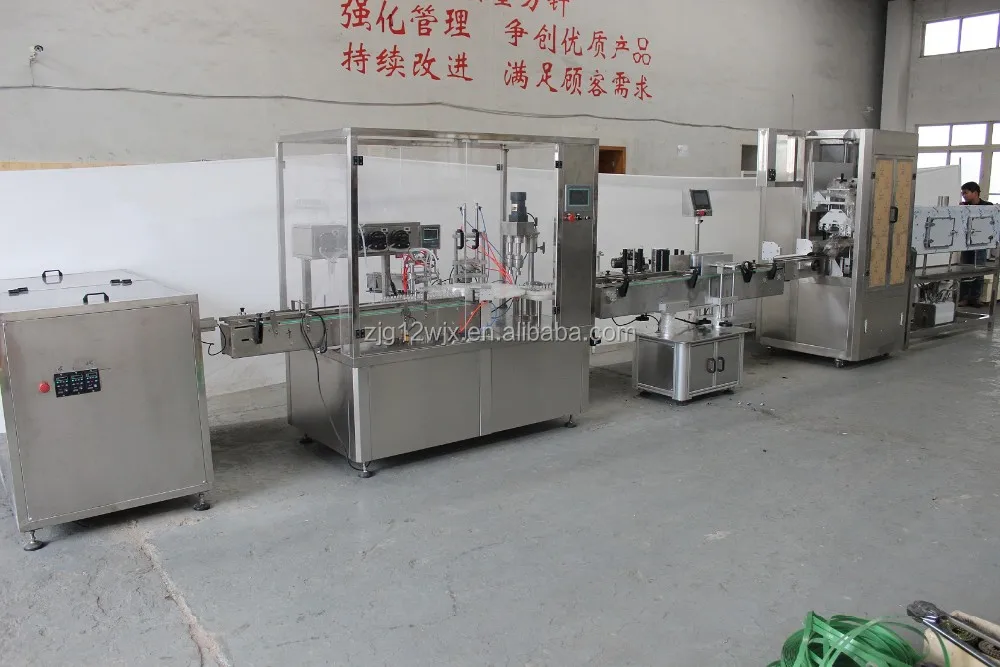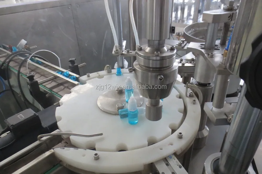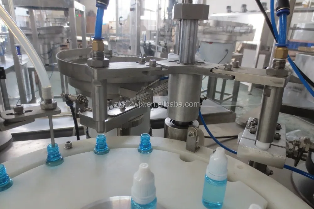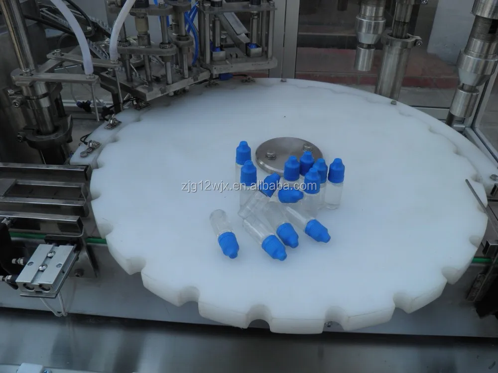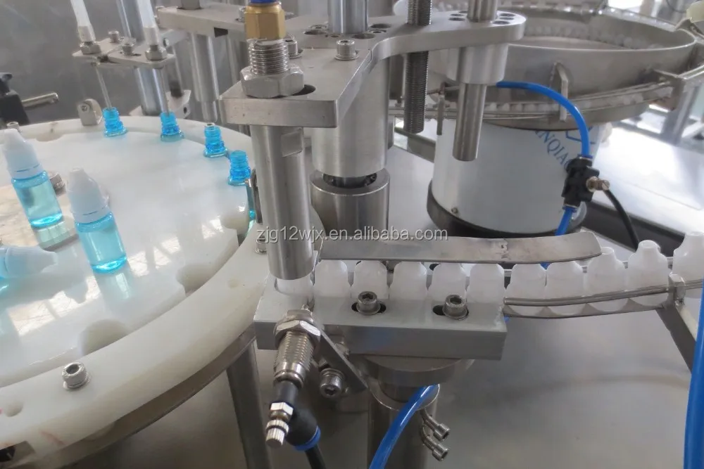 E-Cig liquid, Eye drop filling, plugging &capping machine for the application of round eye drop bottle or similar ones, auto accomplish product filling, plug place, cap place, cap screw-on.