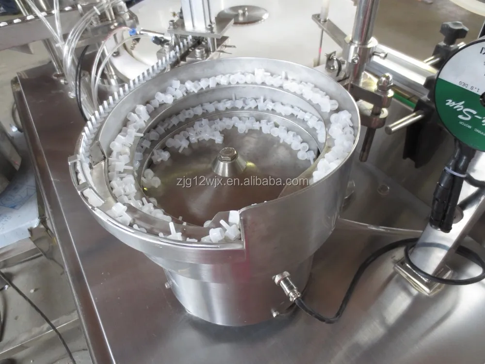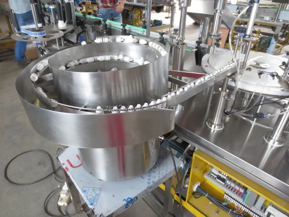 The machine is composed by a load turntable, ceramic piston pump(alternative peristaltic pump) &fill nozzles, plug &cap sorter, Plug &cap placer, cap screw-on system, unload tray.