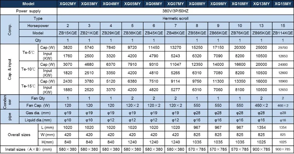 Technical Parameters For Copeland Refrigeration Condensing Unit