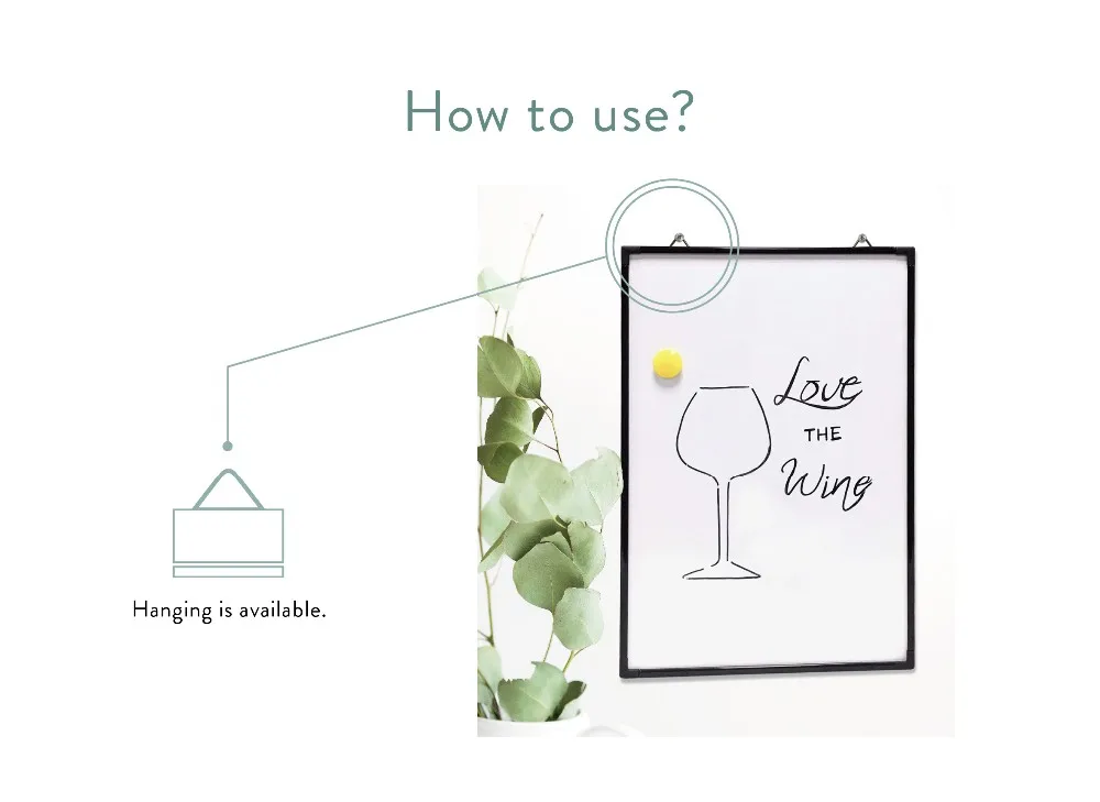 Elegant black aluminum frame magnetic dry erase whiteboard