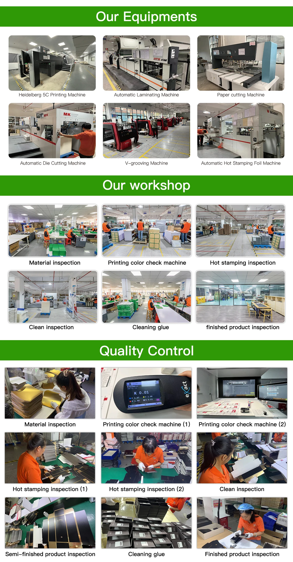 Finish Processing | Glossy/Matt Varnish, Glossy/Matt Lamination, Gold/sliver foil stamping, Spot UV, Embossed, etc. | |