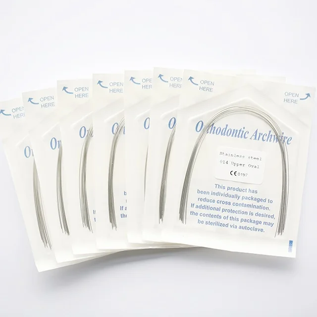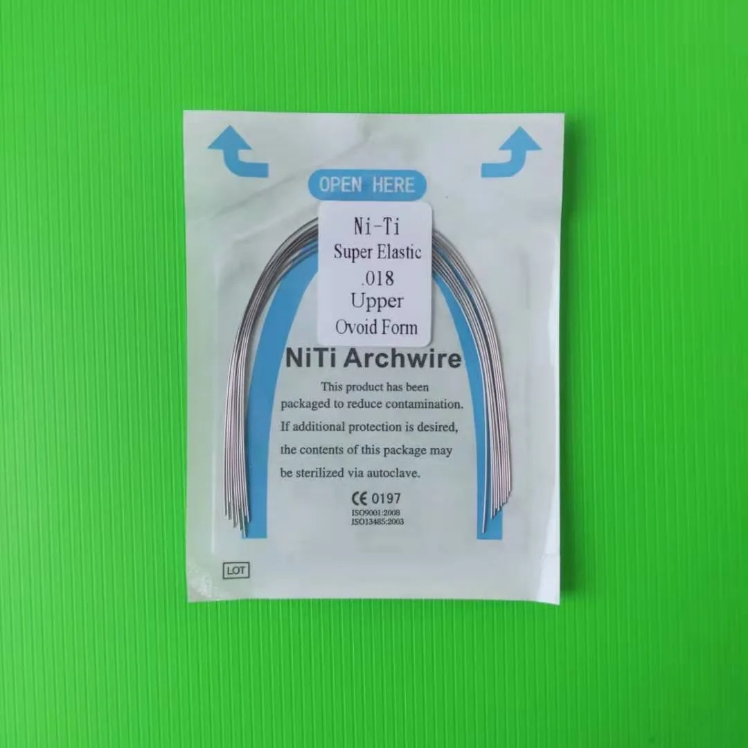 Reverse curve arch wire is 2 pcs per pack, it is made of high quality Ni-Ti, also have round and rectangle, a lot of different size to choose.