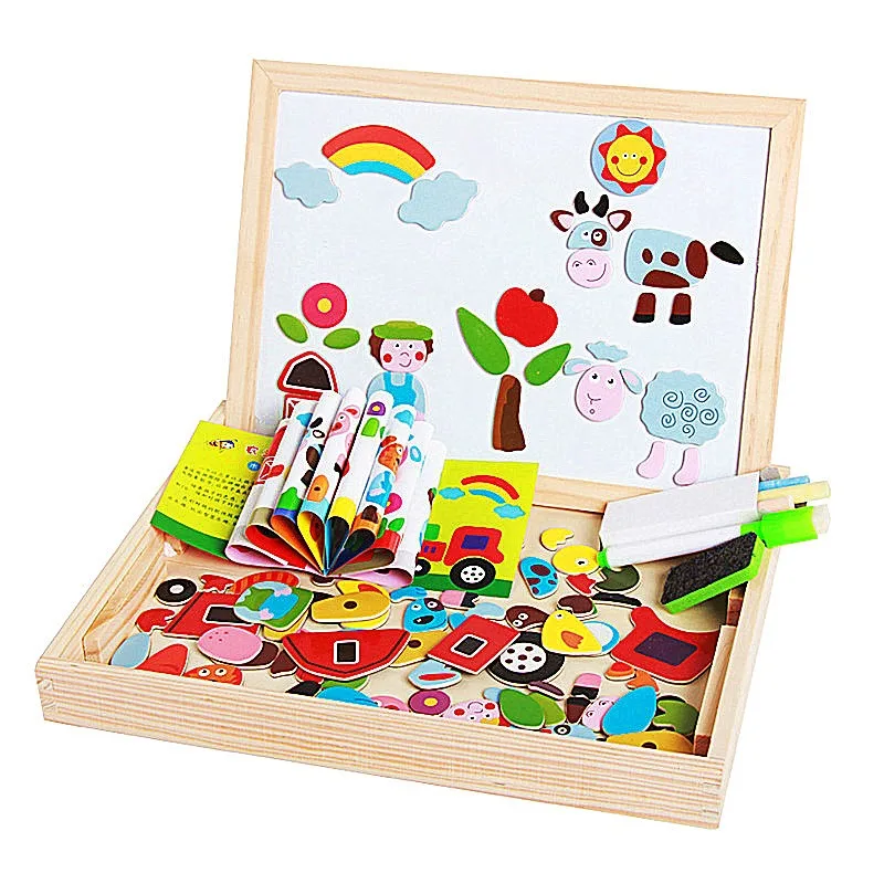 Educational Toys Wooden Magnetic Drawing Writing Board Jigsaw Puzzles Dry Erase Double Side Game Gift kids toys educational for Baby Kid | ||
