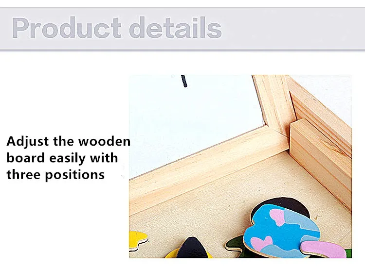 * Adjustable and Removable Toy Easel: The wooden box is designed with a removable board lid which can stand up in the box. Kids can also store the wooden puzzles in box by themselves after board game, perfect for travel drawing.