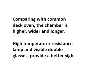 Comparing with common deck oven, the chamber is higher, wider and longer.