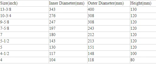 Наружный диаметр обычно 5 "до 25" меньше, чем номинальный размер отверстия, что делает его подходящим для применения там, где существуют средние и большие кольцевые условия.
