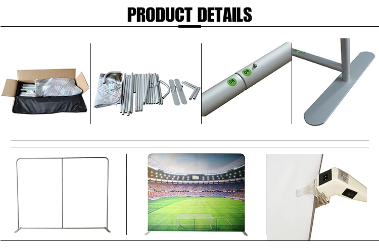 | Finishing | Custom printed fabric+Aluminum stand+carry bag+carton. Especially: graphic will be packed in bag also. |