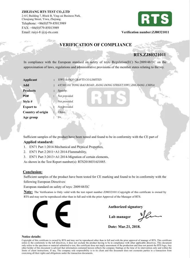 Certificate: | CE/EN71/ASTM |