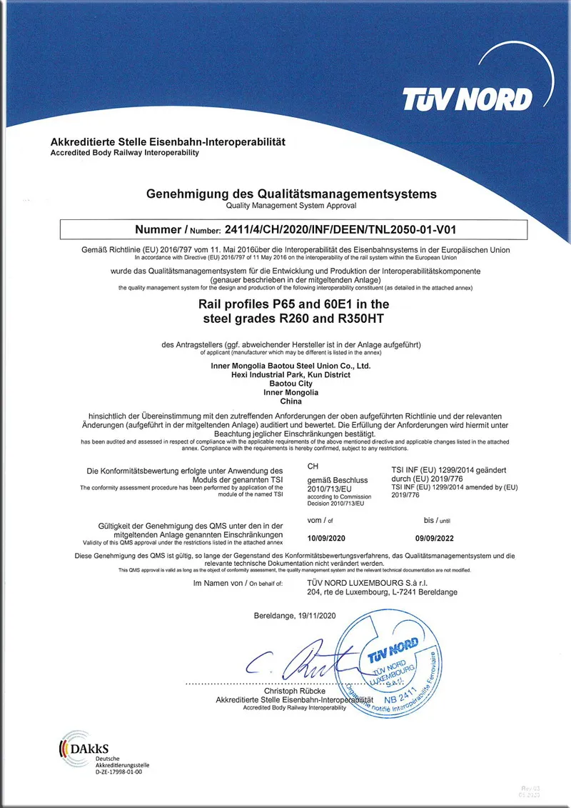 2. Chinese Standard: TB/T2344-2012, TB/T3276-2011