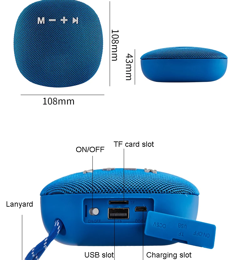 TF slot: it can decode and play MP3 format audio when put TF card into the slot