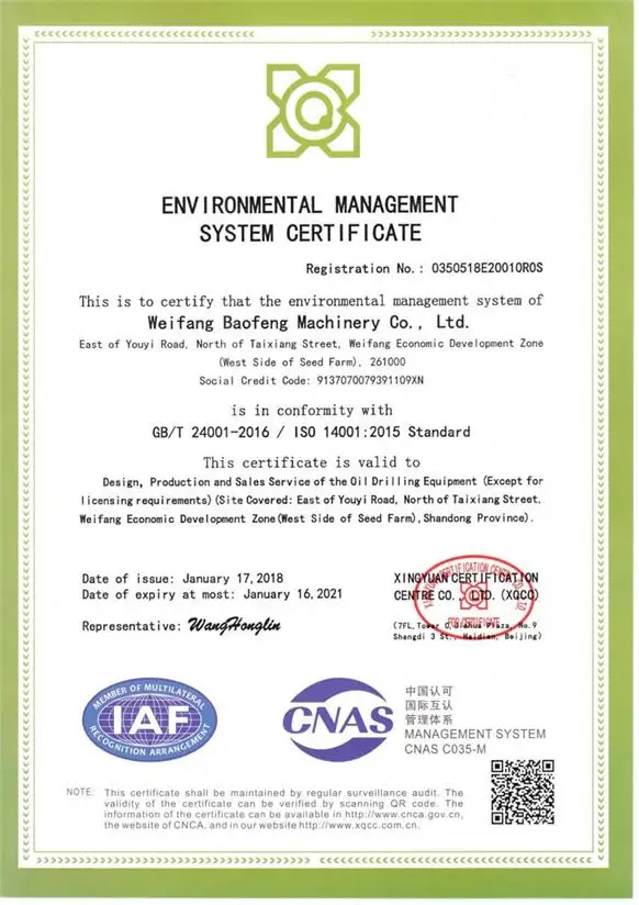 Weifang Baofeng Machinery Co., Ltd. была основана в сентябре 2006 года с уставным капиталом в сто два миллиона. Речь идет о новых развивающихся частным предприятием, производстве и продаже машин и интегрирует различные машинного оборудования, таких как нефтяного оборудования, сельскохозяйственной техники и горного оборудования. Это провинциальных безопасности производственное подразделение, муниципальных стандартных современное предприятие и МУНИЦИПАЛЬНОГО КОНТРАКТА-кредитные предприятия.