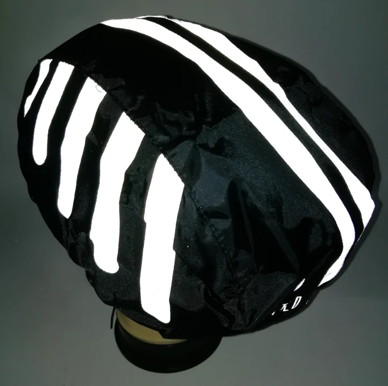 Our helmet cover has reflective strip on each side and the front. Others only have strip on each side. And the reflective is super bright in the night.