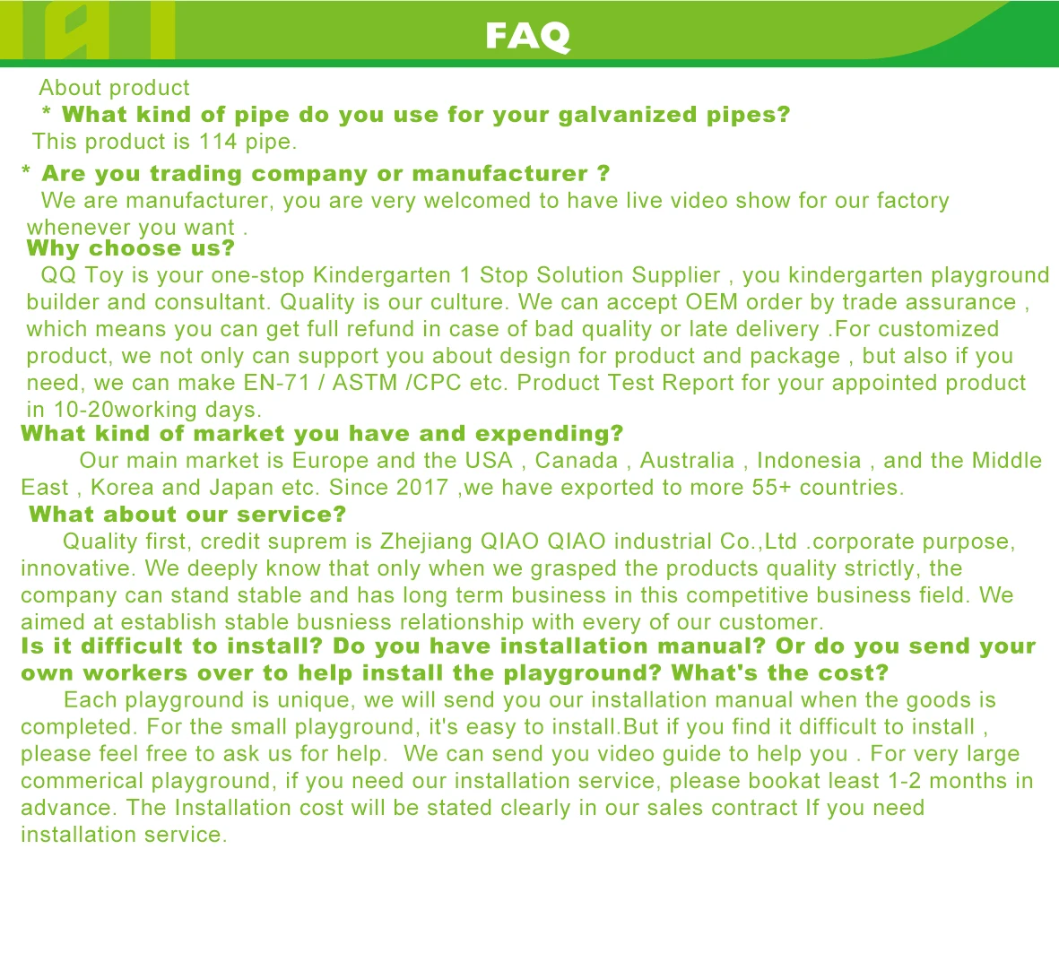 Apply to | Garden, Amusement park, kindergarten, pre-school, residential area, supermarket, restaurant, etc. |
