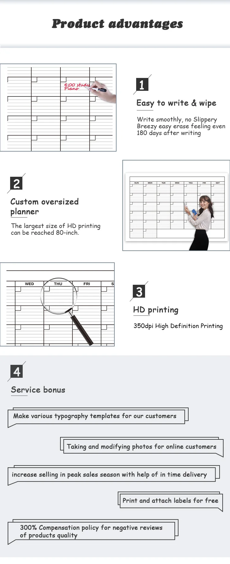 Shanghai Cntopprint Co., Ltd. was founded in 2007 and is headquartered in Shanghai, China. After 10 years of development, Cntopprint has been recognized as a leading printer and manufacturer of high quality, competitive price and custom paper printing products, and most of our products have been exported to North America, Europe and Middle East. After years of exploration and experience, calendar printing products has been our priority. We produce various kinds of calendars and planners, which include magnetic calendar, planner, dry erase calendar, wall calendar, desk calendar, whiteboard and PVC chalkboard, learning cards, playing cards, educational paper toys and other paper products. With company's product line steadily increasing each year, you can find every calendar category here. All our products are conceived, created and designed by our in-house art and design team. We also accept OEM production.