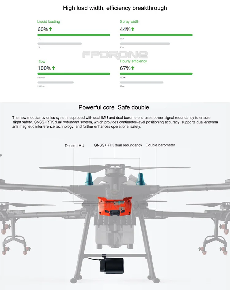 | Сельскохозяйственных защиты растений machineT16 | В T16 используется для сельского хозяйства защиты растений, расчесывание мощная аппаратная сотрудничество AI интеллигентая (ый) Технология двигателя и 3D работу планирования. Это обеспечивает более эффективный, умнее и надежнее решения, инновации непрерывно защиты растений промышленности. Данная трость осуществляет беспилотный Летающий аппарат для охраны операций на новую высоту. | | | | | Технические характеристики | | Название продукта: | T16 | | Максимальное расстояние между осями: | 1895 мм | | Размеры: | 2520 мм × 2212 мм × 720 мм (расширение руку, лезвие для развертывания) 1800 мм × 1510 мм × 720 мм (удлинитель, система автоматического управления "лезвие в сложенном виде) 1100 мм × 570 мм × 720 мм (руки в сложенном виде) | | Вес машины (без батареи): | 18,5 кг | | Стандартные коробки передач Вес: | 39,5 кг | | Максимально эффективной взлет Вес: | 40,5 кг | | Максимальная потребляемая мощность: | 5600 W | | Наведите время: | 18 мин (@ 17500 мА/ч, и взлет вес 24,5 кг) 10 мин (@ 17500 мА/ч, и взлет вес 39,5 кг) | | Максимальный Угол наклона: | 15 ° | | Максимальная скорость: | 7 м/с | | Максимальная скорость полета: | 10 м/с (Хорошее GNSS сигнала) | | Максимальная скорость ветра: | 8 м/с | | Максимальная взлет Высота: | 2000 м | | Рекомендуемая рабочая температура окружающей среды: | 0 ° C до 40 ° C | | | | | | Упаковка & Доставка |  | | Сертификаты |  | | Наша компания |  | Наша компания Основанная в 2013, fpdrone хорошо известен как всесторонний дронов Произведено в производстве научно-исследовательских, съемка производство и хорошее послепродажное обслуживание. И с тех пор, как 2014, мы начинаем делать научно-исследовательских работ для термальной технологии с Дрон вместе, для того, чтобы сделать решение нефтепровода инспекции, Отопление, Камера для осмотра труб, подстанции инспекции, крупногабаритного оборудования технического обслуживания, противопожарная защита приложений, и поиск аварийно-спасательных работ. И с тех пор, как 2016, обращаем ваше внимание, что в соответствии с сообщениями наших старых клиентов обратной связи, Мы начали сосредотачиваться на система распыления сельского хозяйства беспилотный летательный аппарат для того, чтобы помочь Большой Фермы решить возникшие проблемы в процесс распыления. | Наши продукты Наши продукты широко используются в различных областях, как, например, развлечения, ТВ фон для фотосъемки, сельского хозяйства, географических особенностей отображения, общественная безопасность проекта inspect и т. д. fpdrone технология имеет профессиональную команду технологии, придерживаясь Дух инноваций, эффективность, самоотверженность и усилия, поставка отличной продукции, хорошая эффективные решения и хорошее обслуживание на беспилотного летательного аппарата. | | | | | | | Мы поставляем сервис one-stop Дрон решения и переоснащения, для того, чтобы удовлетворить потребность в промышленности, сельскохозяйственные безопасности и аварийно-спасательных и т. д .. Профессиональный поле | Своевременный ответ Мы ответим на любые ваши запросы в течение 24 часов, даже если в праздничные дни. Строгий контроль качества Наши Q & C команда проверит каждый продукт качество строго перед поставкой. Послепродажный сервис Наша служба поддержки клиентов будет получить все отзывы от наших клиентов и улучшить наше обслуживание. Мы дадим Мы несем ответственность за решение в кратчайшие возможны