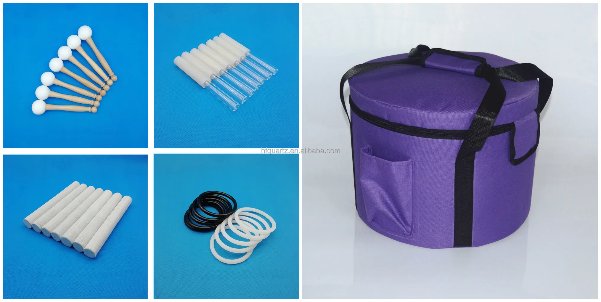 Our crystal singing bowls are manufactured from 99.999% pure quartz crystal, and are the finest, pristine crystal singing bowls, size from 6"-24". The crushed quartz is heated to at least 4000 degrees in the manufacturing. Then, they are tested to determine the musical note.