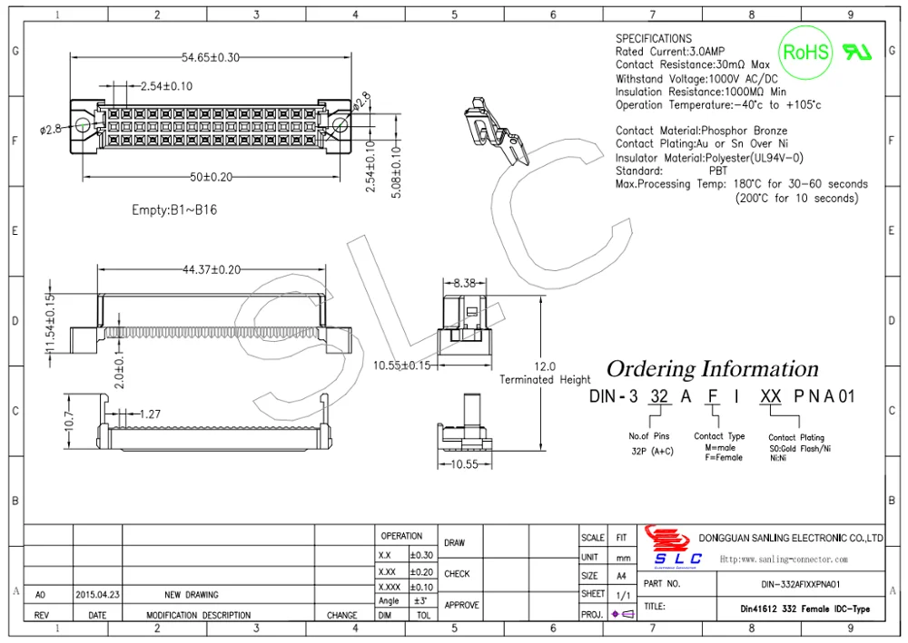 | Description | Din41612 Connector,male,3row,32Pin,IDC Type,Grey Color |