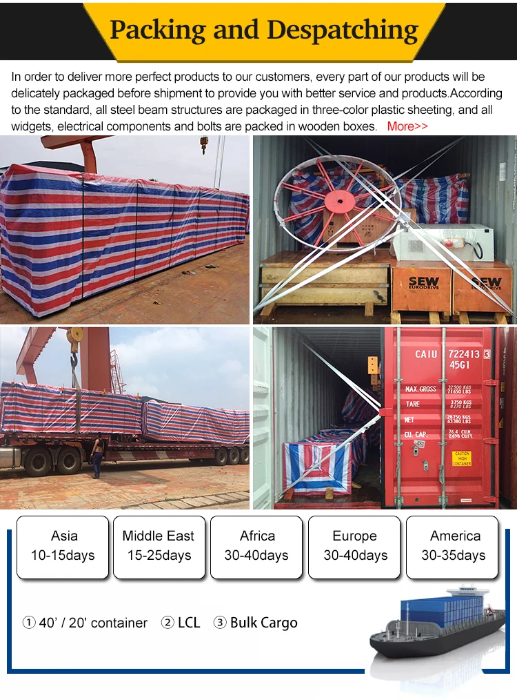 2.Girders and other main parts will be packed by plastic woven cloth, for preventing rust from soppy condition during the transportation.