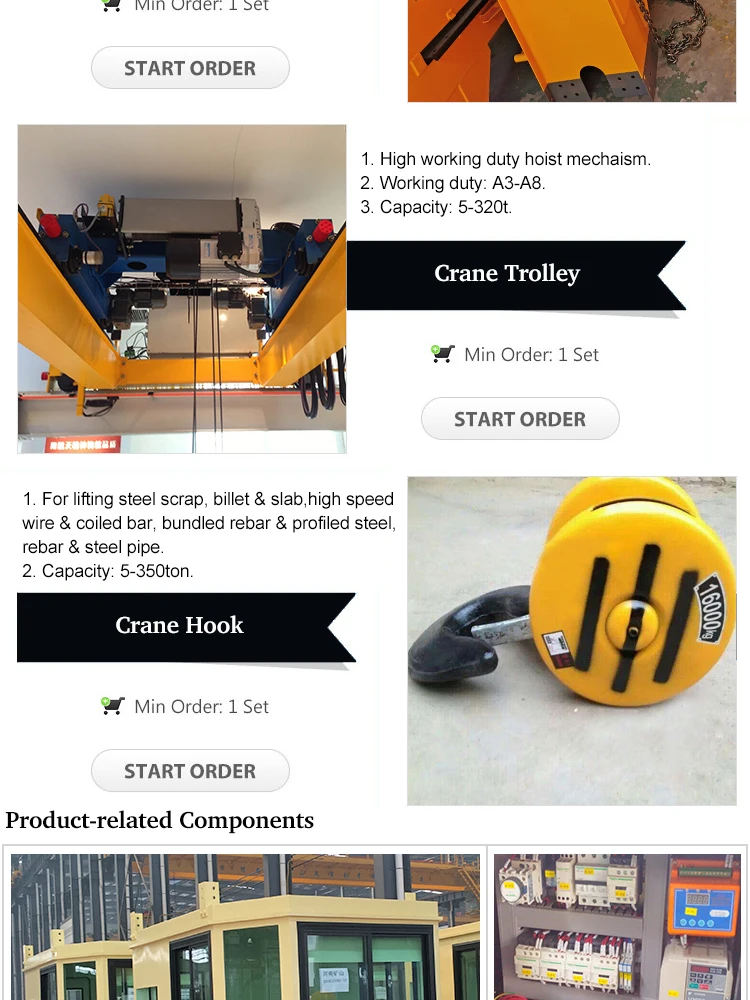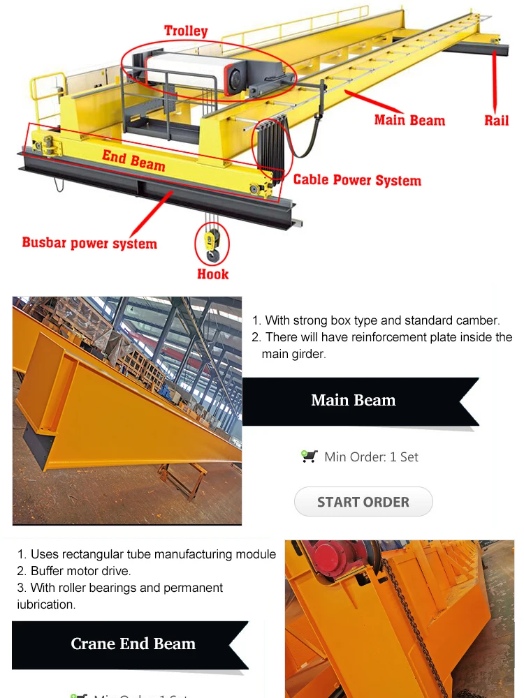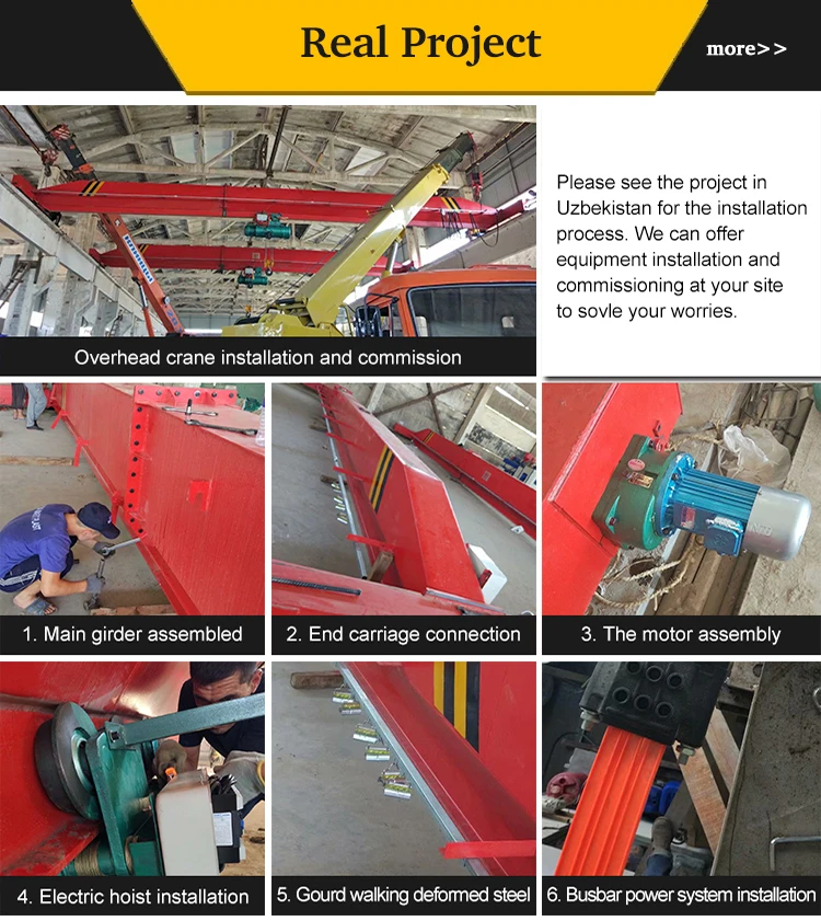 Over head traveling bridge crane mainly consists of bridge, trolley travelling mechanism, trolley and electrical appliances, and is divided into 2 working grades of A5 and A6 according to the use frequency.