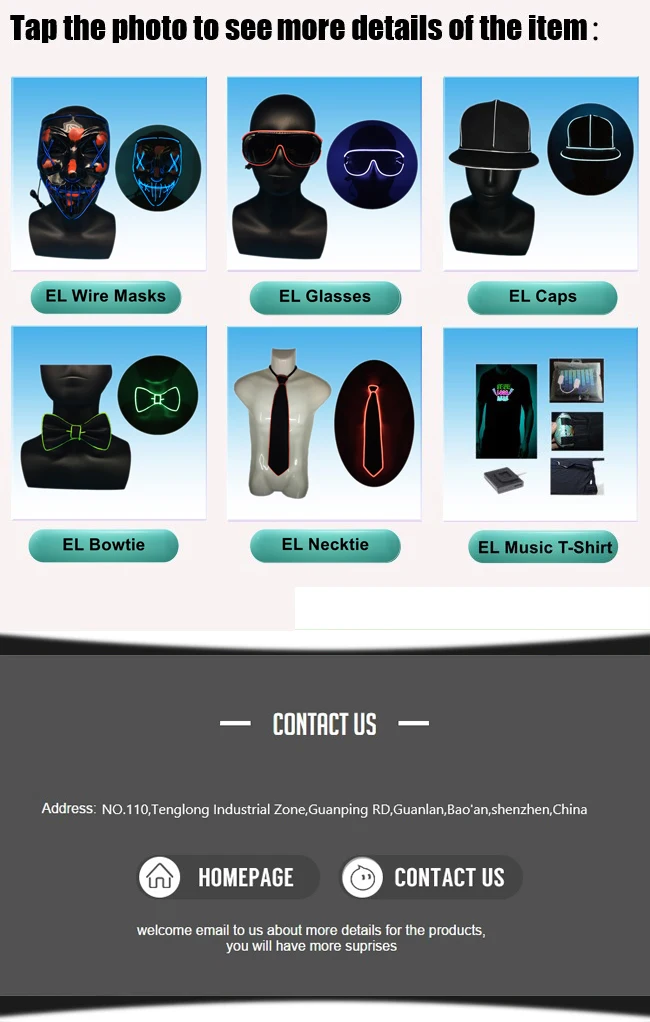 EL light up sunglasses/masks/ties/caps, and many other lighting up gifts.