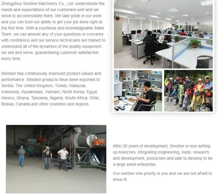 Zhengzhou Sinolion Mxchinery Co., Ltd. is a high-tech Company which professional manufacturing the production of briquette equipment, building material equipment and mining machinery. Sinolion has continuously improved product values and performance. Sinolion products have been exported to Serbia, The United Kingdom, Poland, Turkey, Malaysia, Indonesia, Kazakhstan,Vietnam, North Korea, Egypt, Mexico, Ghana, Cameroon, Tanzania, Migeria, South Africa, Bolivia, Canada and other countries and regions.