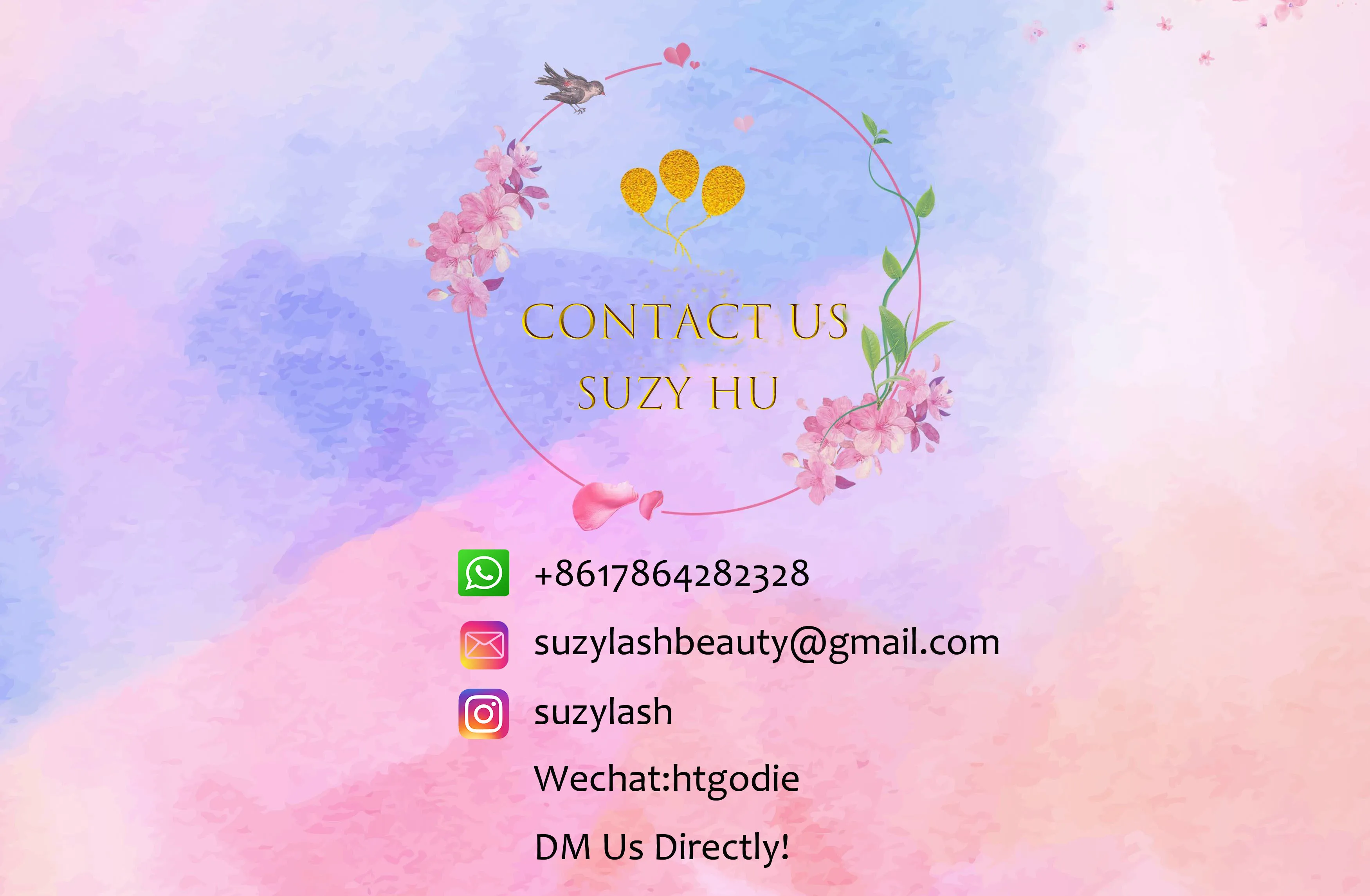 Свяжитесь с Suzy непосредственно в Whatsapp:+ 86 17864282328