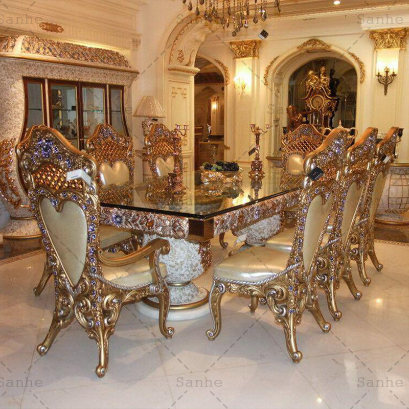 B:Dining room: one table +dining chair. (Also have dining car, buffet cabinet),the table we have long and round shape , the chair have arm dining chair and side dining chair. When customer want to purchase the dining room furniture, please inform us your requirement, such as the color, the shape (round or long),how many people sit? We will make the suitable combination for you.