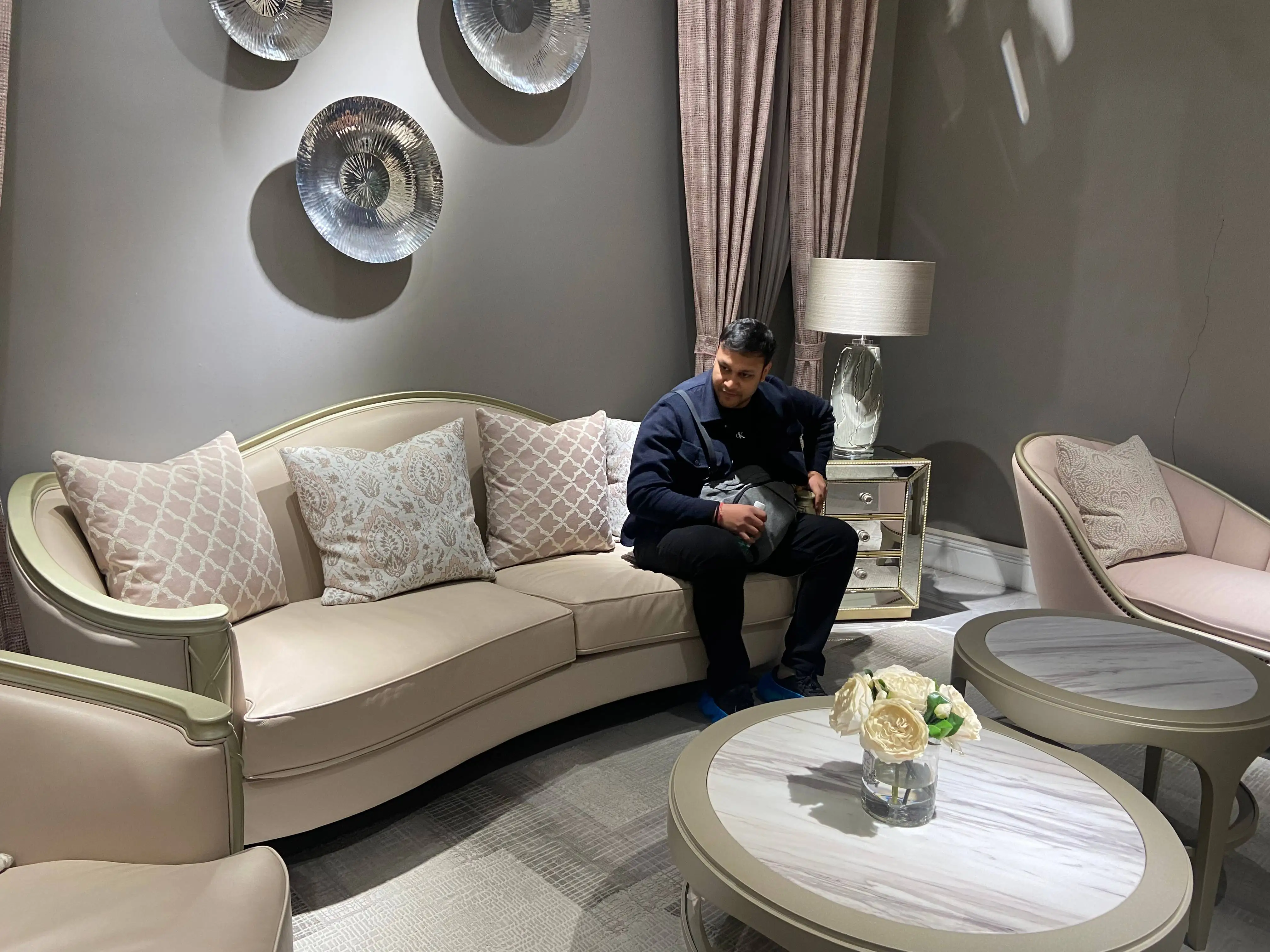 C: living room: 1+2+3 sofa set +two small coffee tables + one big coffee table, also customer could choose the wine cabinet with TV stand.