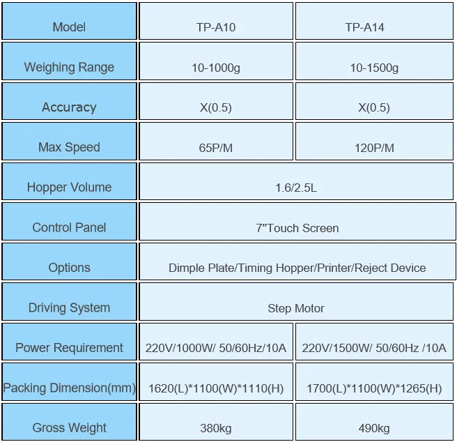 It is suitable for weighing leisure foods such as candy, seeds, jelly, pet foods, puffy foods, pistachio, peanuts, nuts, raisins etc. and big shell nuts, hardwares, dried fruits, frozen foods, snack foods, meatballs and so on.