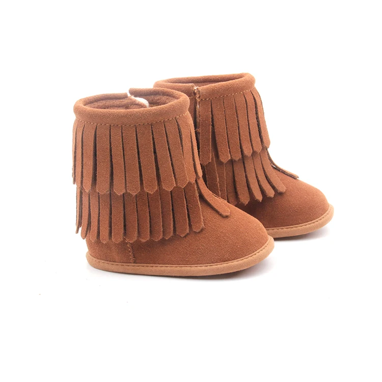Genuine Leather Baby Moccasins Winter Warm Soft Sole Baby Boots Kids