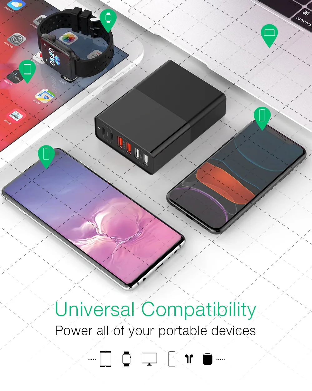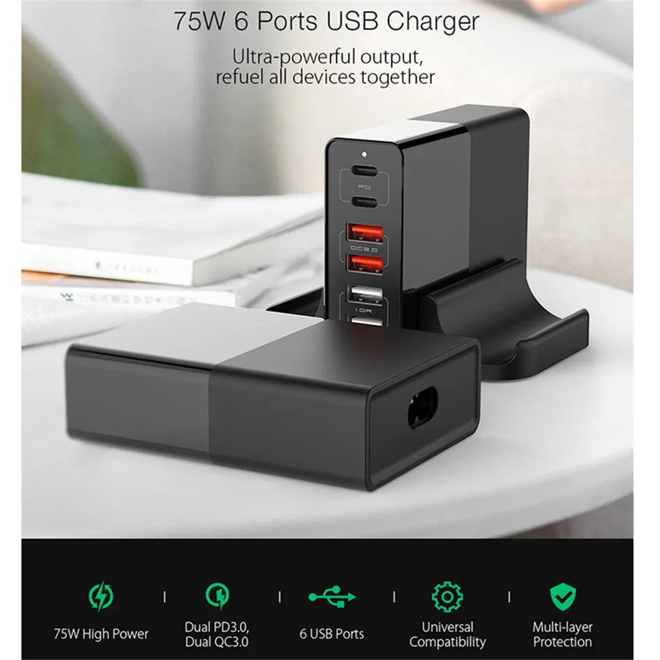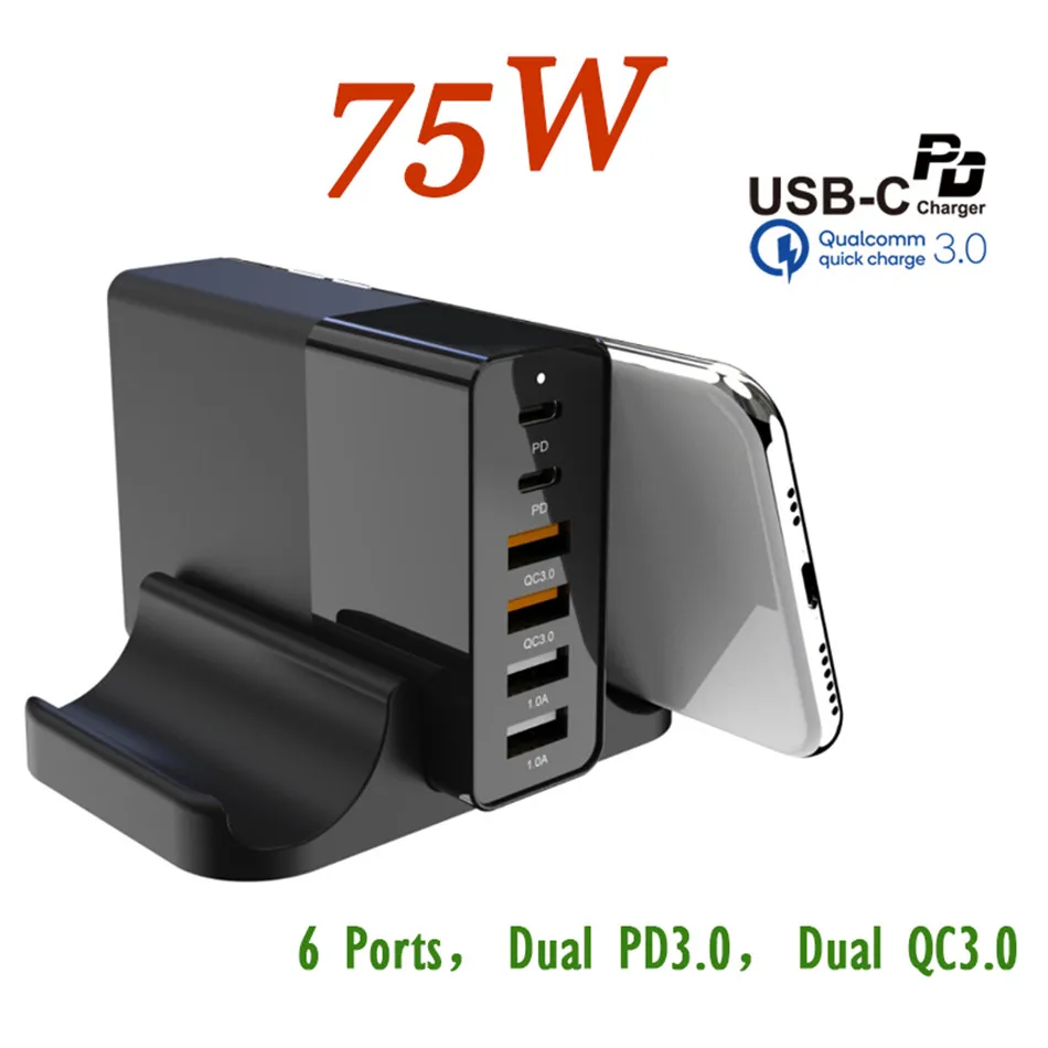 Product Name | 75W USB Type C Charger Hold Stand Quick Charge 3.0 Delivery USB Desktop PD Charger Adapter for MacBook, Laptops, Phones tablet |