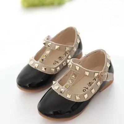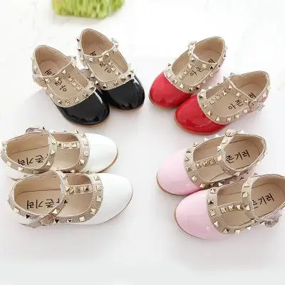 Летние детские модные туфли принцессы Корейская обувь из искусственной кожи с заклепками для девочек красные танцевальные