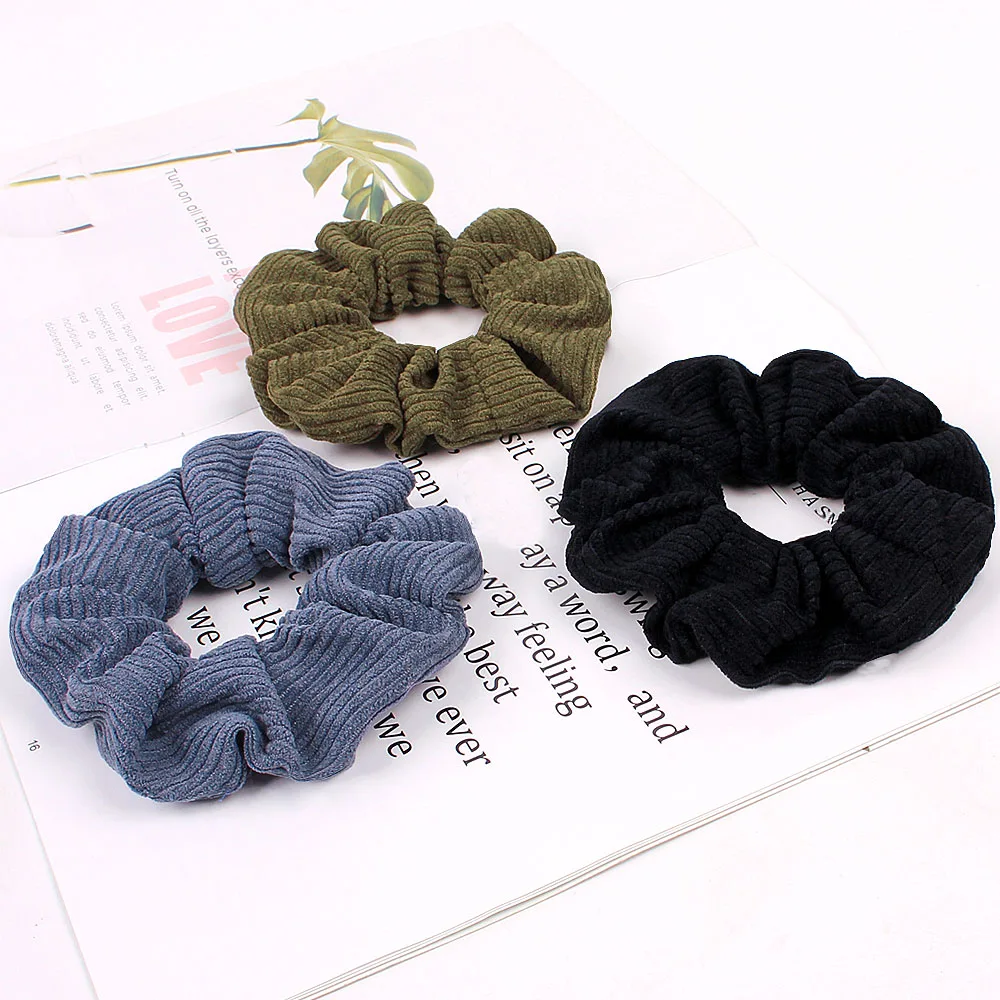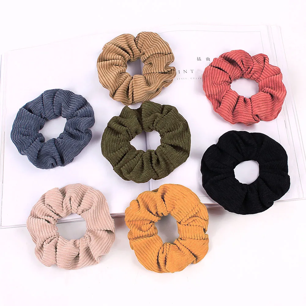 ItemItem | Amazon hot style corduroy scrunchies autumn/winter stripe solid color fur scrunchie | ||||||