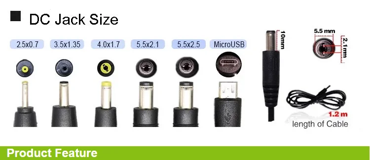 | the length of dc cord | 1M 1.2meter,1.5 meter,1.8 meter (2464AWG,2468AWG) |