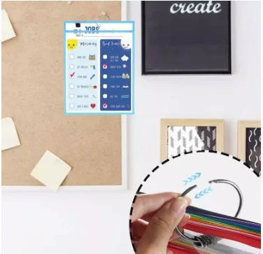 Whole set Include | 30 pcs dry erase pockets +12pcs erase markers+3pcs metal eyelet ring+4pcs eraser | |||||||