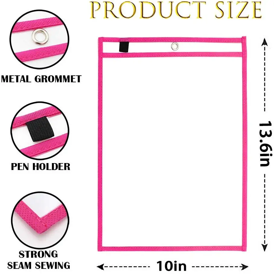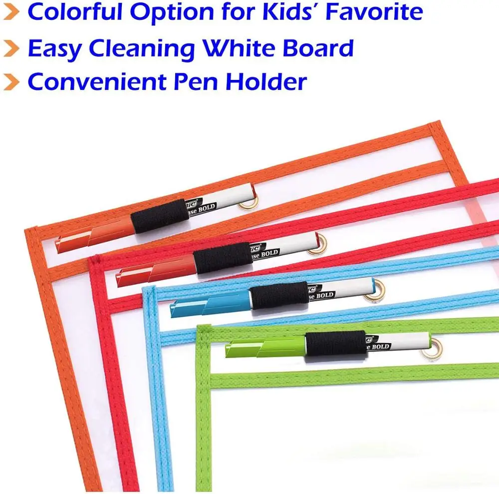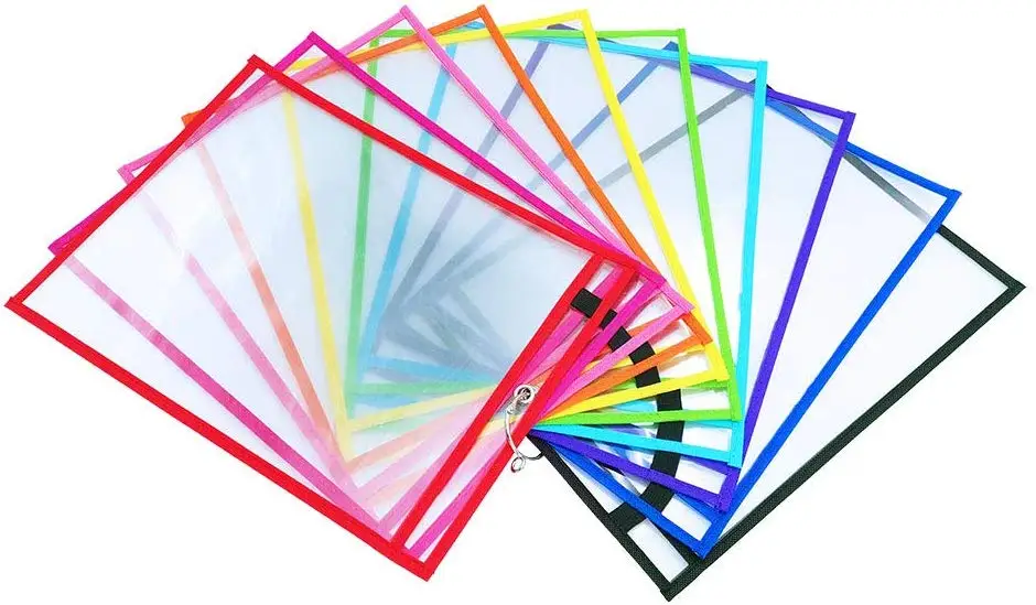 Durable Plastic Sleeves Transparent Dry Erase Pocket for School Teachers and Kids | ||||||||