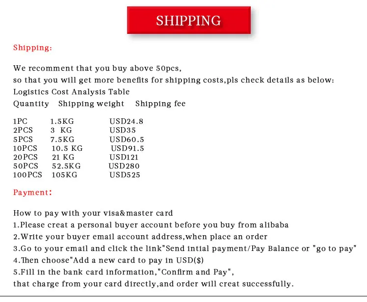 Packing | 10 PCS/CTN Carton size: 49*35*29 CM Carton weight: 11KG |