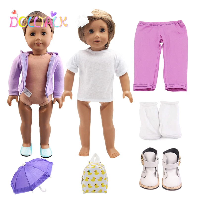 Повседневный комплект одежды из 7 предметов, Удобный спортивный костюм для детей от 18-дюймовые куклы с носками; Сезон зима, обувь и аксессуары