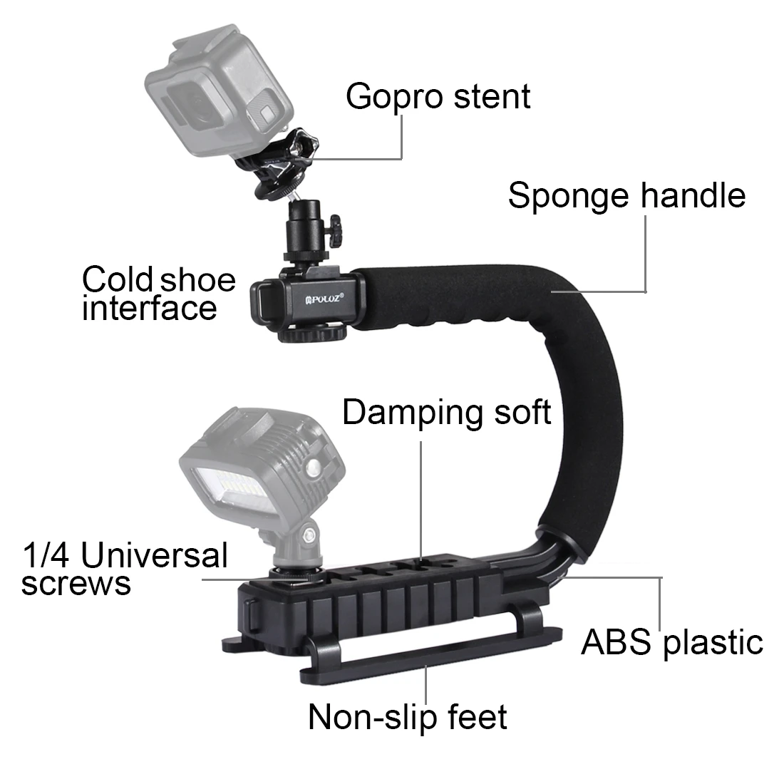 Product Name | PULUZ U/C Shape Portable Handheld DV Bracket with Cold Shoe Tripod Head & Phone Clamp & Quick Release Buckle & Long Screw for All SLR Cameras and Home DV Camera |