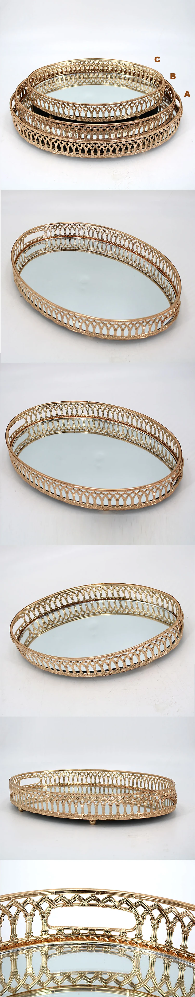 Wholesale Coffee Serving Glass Mirror Tray For Perfumes Tea Gold Metal Tray