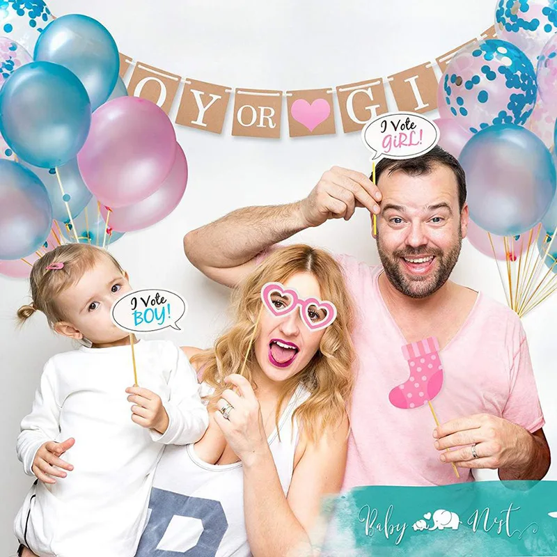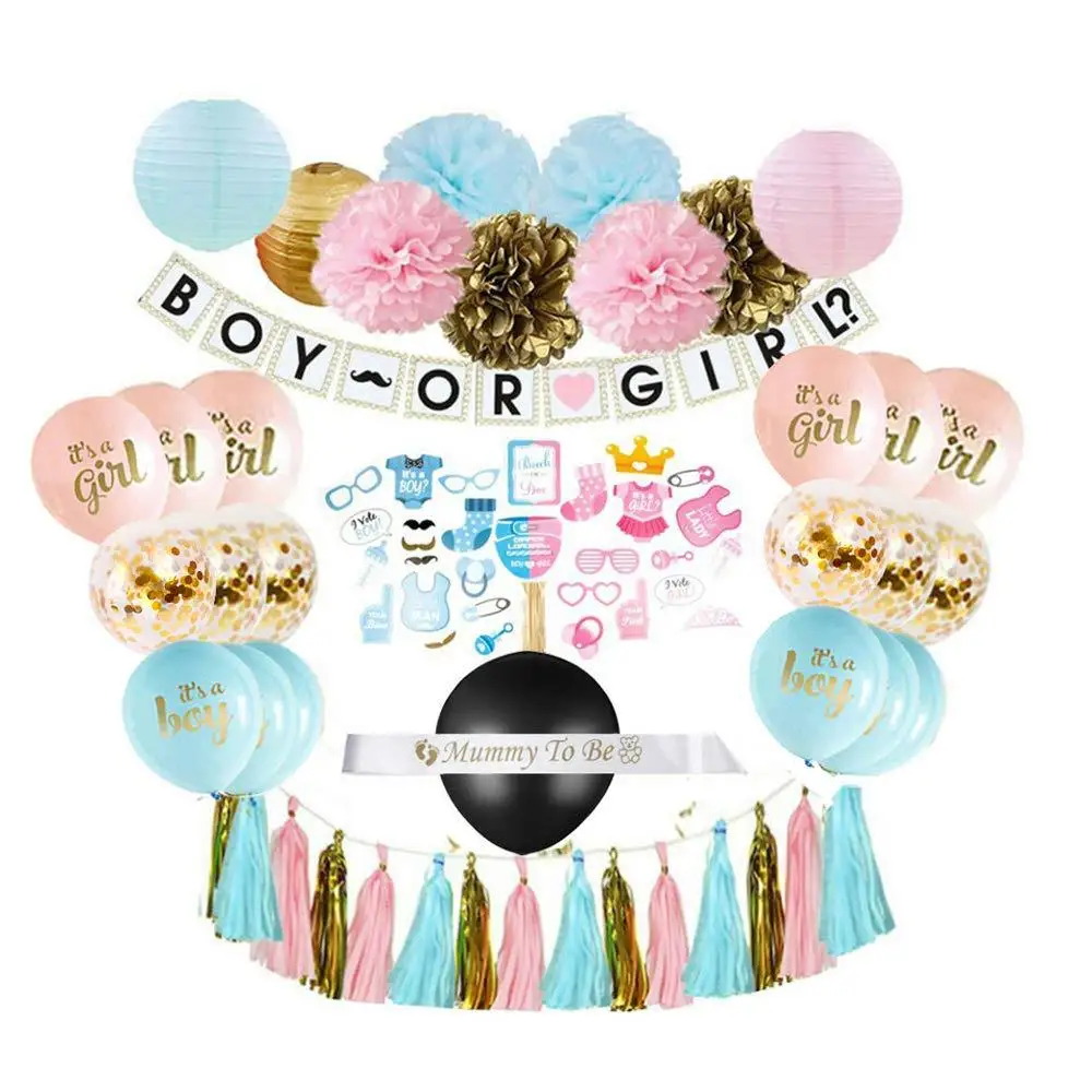 Include | Prop 30pcs set "mommy to be" shoulder girdle 156*9.5cm 18" mark balloon *3 12" confetti balloon*6 "boy or girl" flag*1 12" boy balloon *10 12" girl balloon*10 36" black balloon*1 confetti 10g pink 10g blue | |