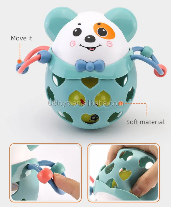 Amazon hot sell baby belling musical plastic silicone colorful hand baby rattles for kids