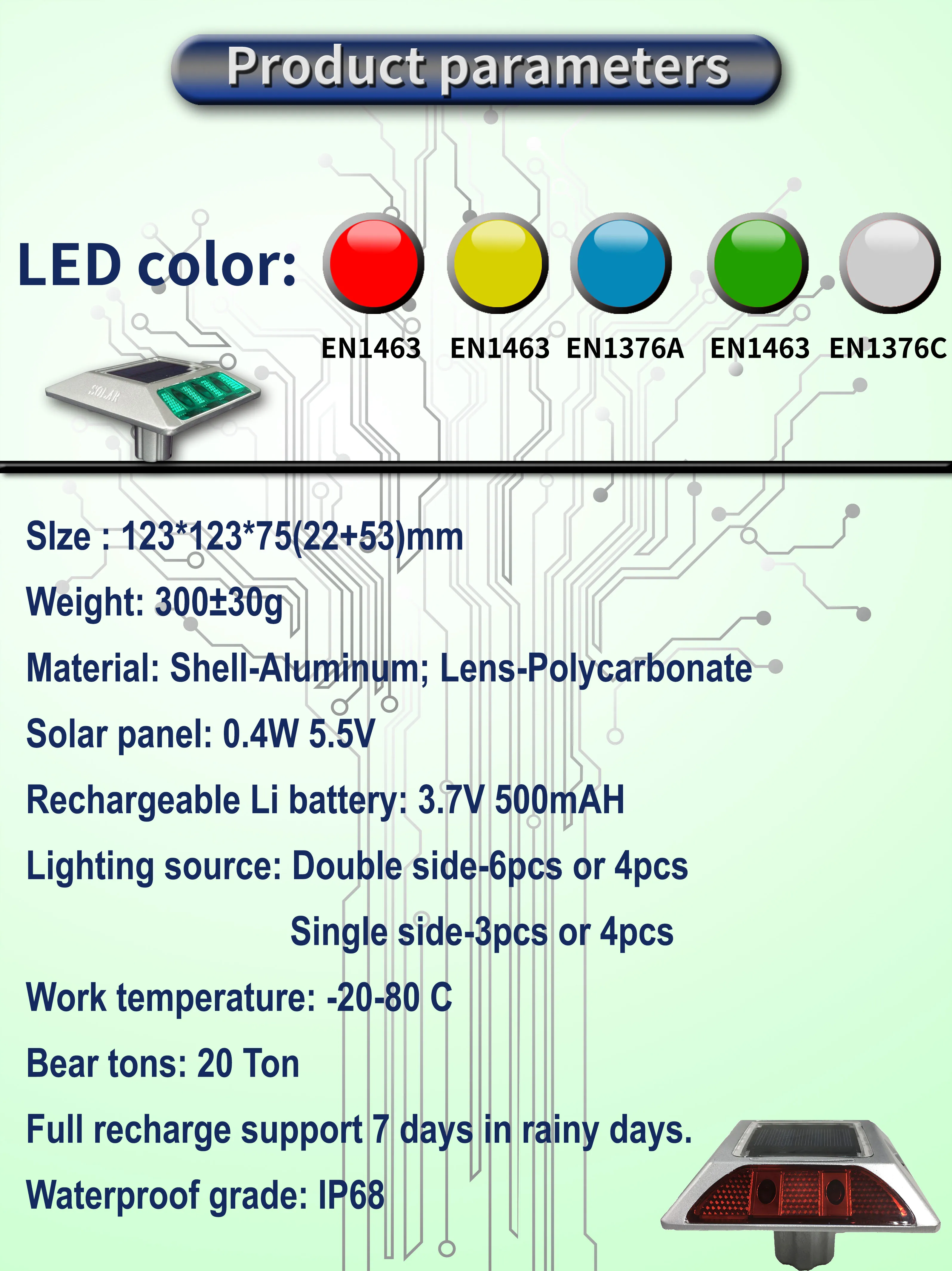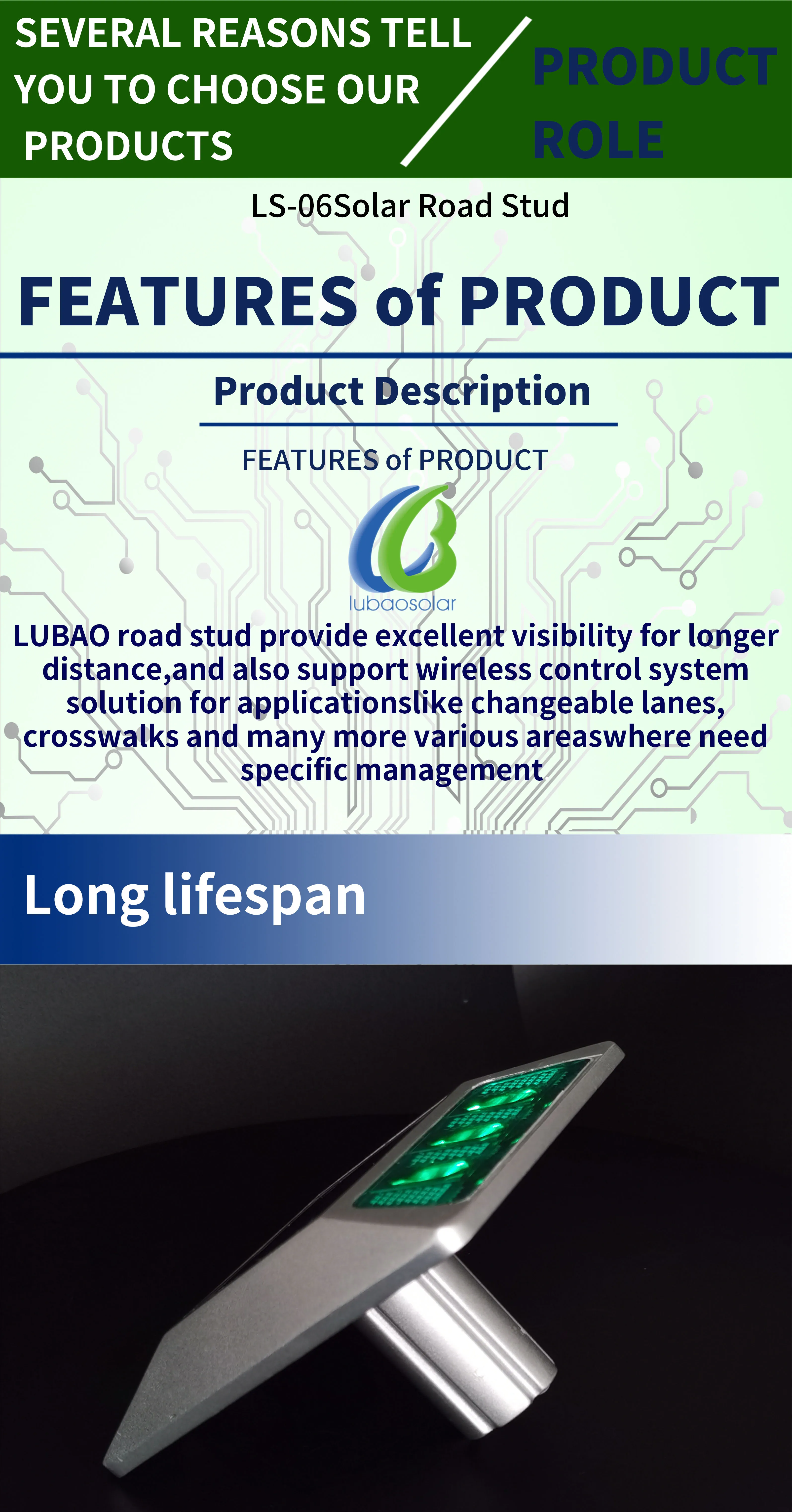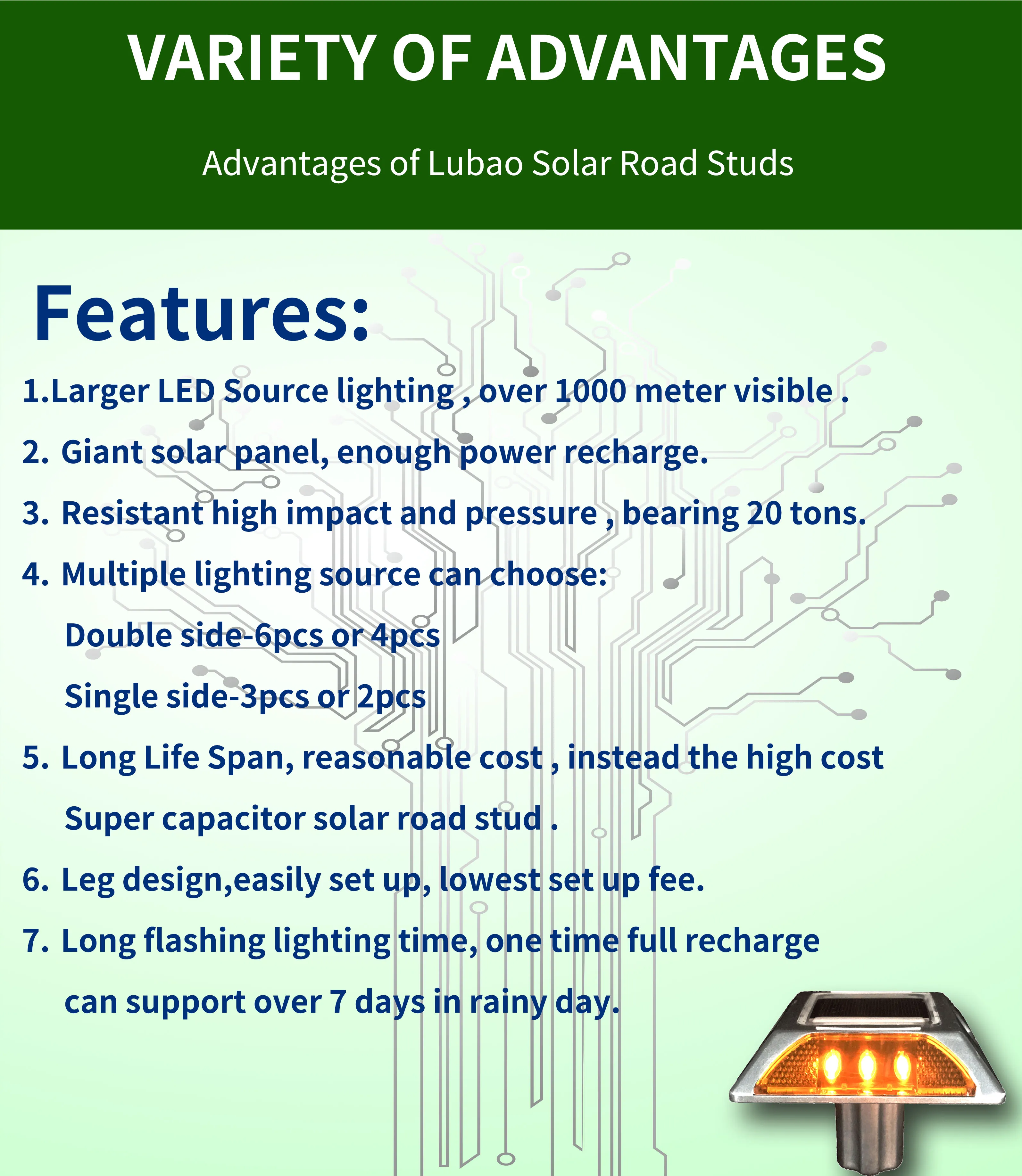 Lubao manufacture design LED lane marker traffic security solar powered reflective road stud | ||