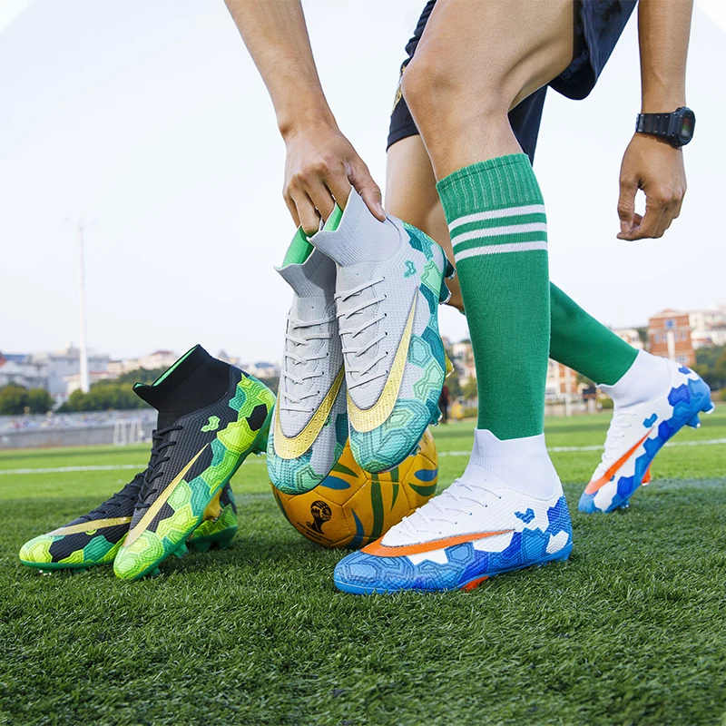 Unisex Soccer Shoes Long Spikes TF Ankle Football Boots Outdoor Grass Cleats Football Shoes chuteira futebo