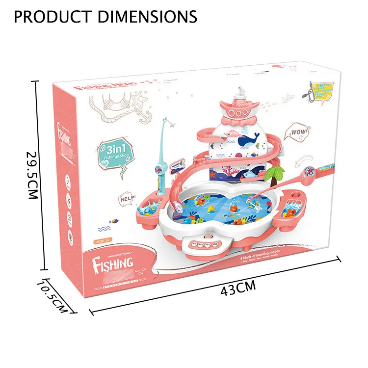 Descriptions: | 3 In 1 Usb Electric Slide Track Fishing Game Toy Set For Kids | ||||||