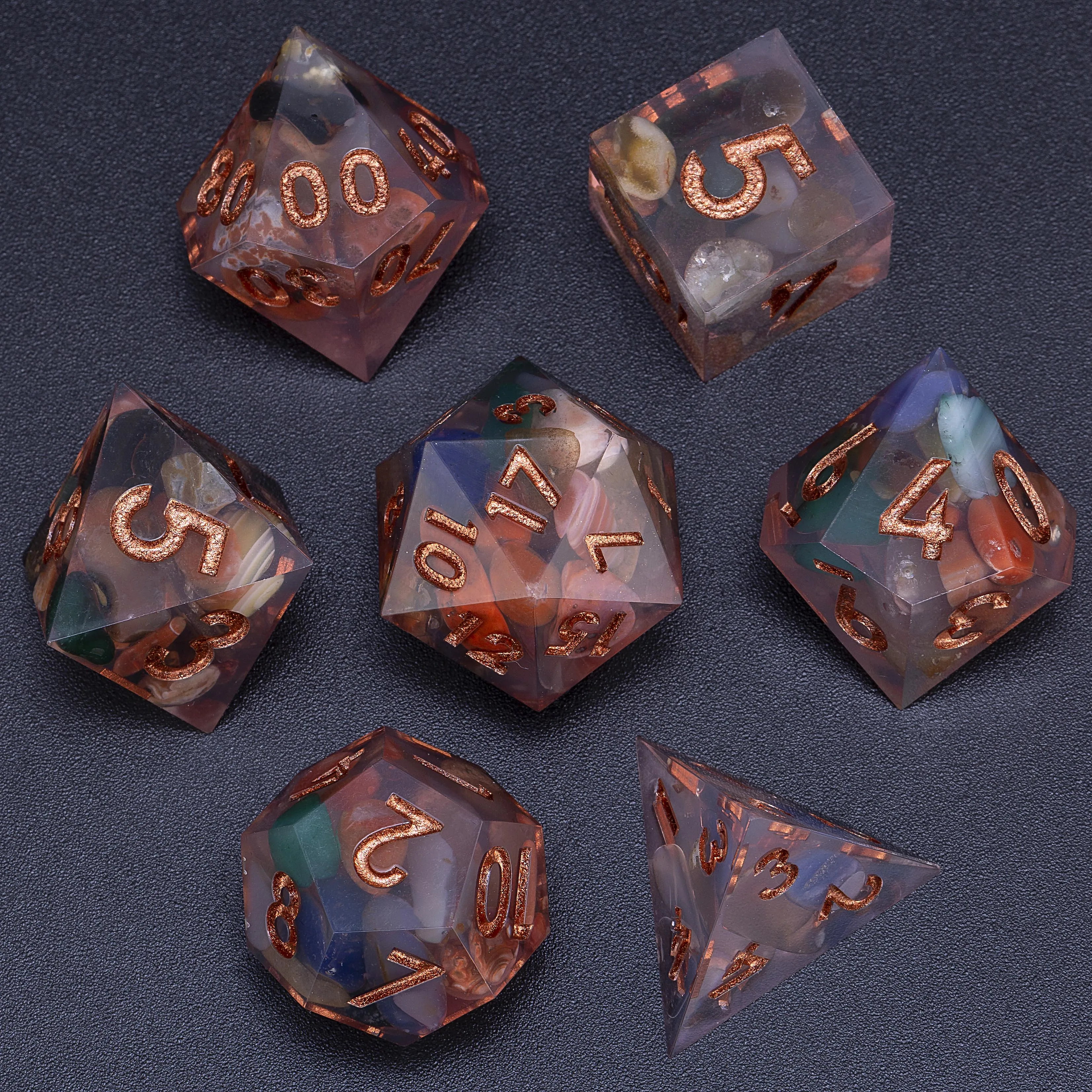 Welcome to Mini Planet Dice! We are the original manufacturer of high-end hand-made sharp edge dice.We have invested a lot of time and money to concentrate on the development of high-end handmade dice with various original designs. Our dice are made of 100% epoxy resin, and every link of production is purely handmade, including pouring, sanding, polishing, and inking. We really hope that Dungeons and Dragons lovers can find your favorite dice set in Mini Planet.