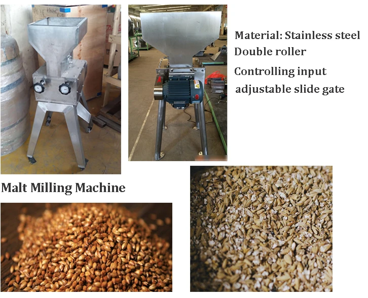 Солодовое дробильное оборудование используется роликовая мельница, расстояние регулируется. Это самый простой, пара роликов для рисования, два ролика во время шлифования относительного вращения, скорость вращения ролика фиксируется, другой регулируется.