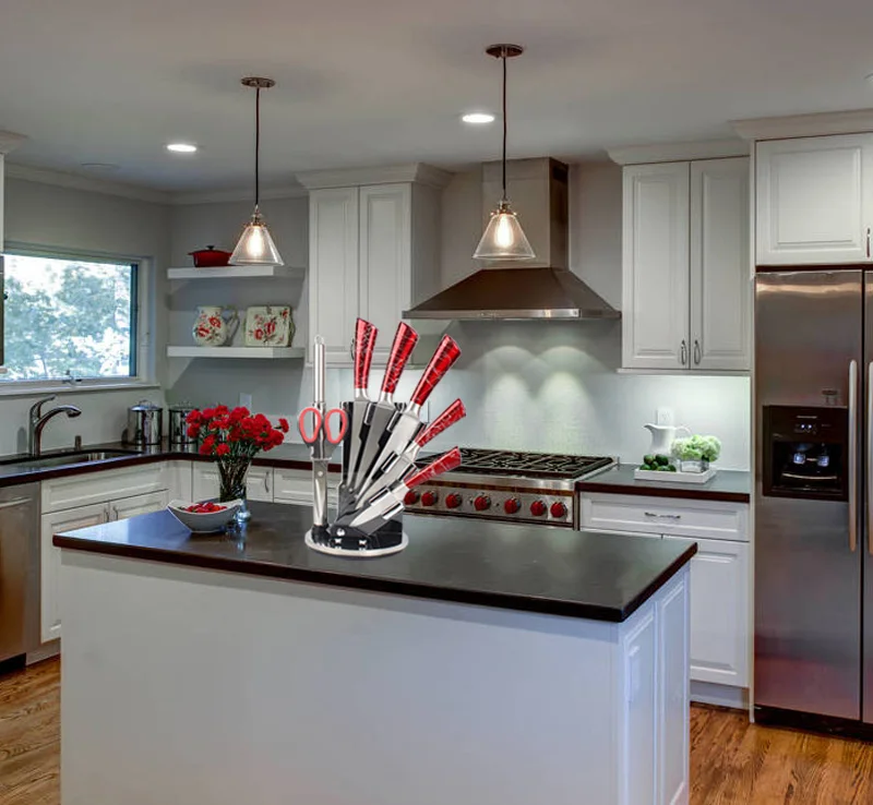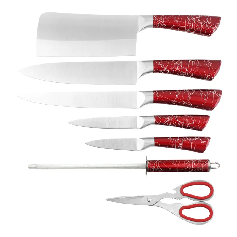 This 8-piece Hollow-Handle Stainless-Steel Kitchen Knife Set is a dependable collection of artistic knives.