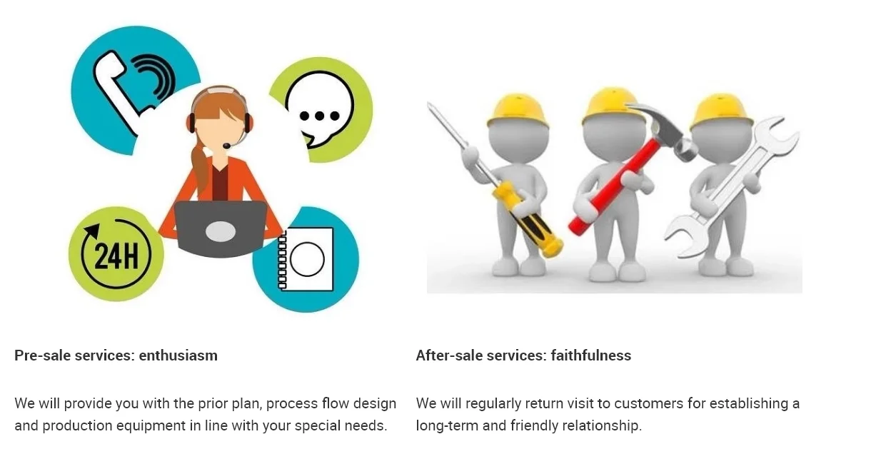 Just call us if any problem you encountered when the whole line in operation, our technician will give you a solution